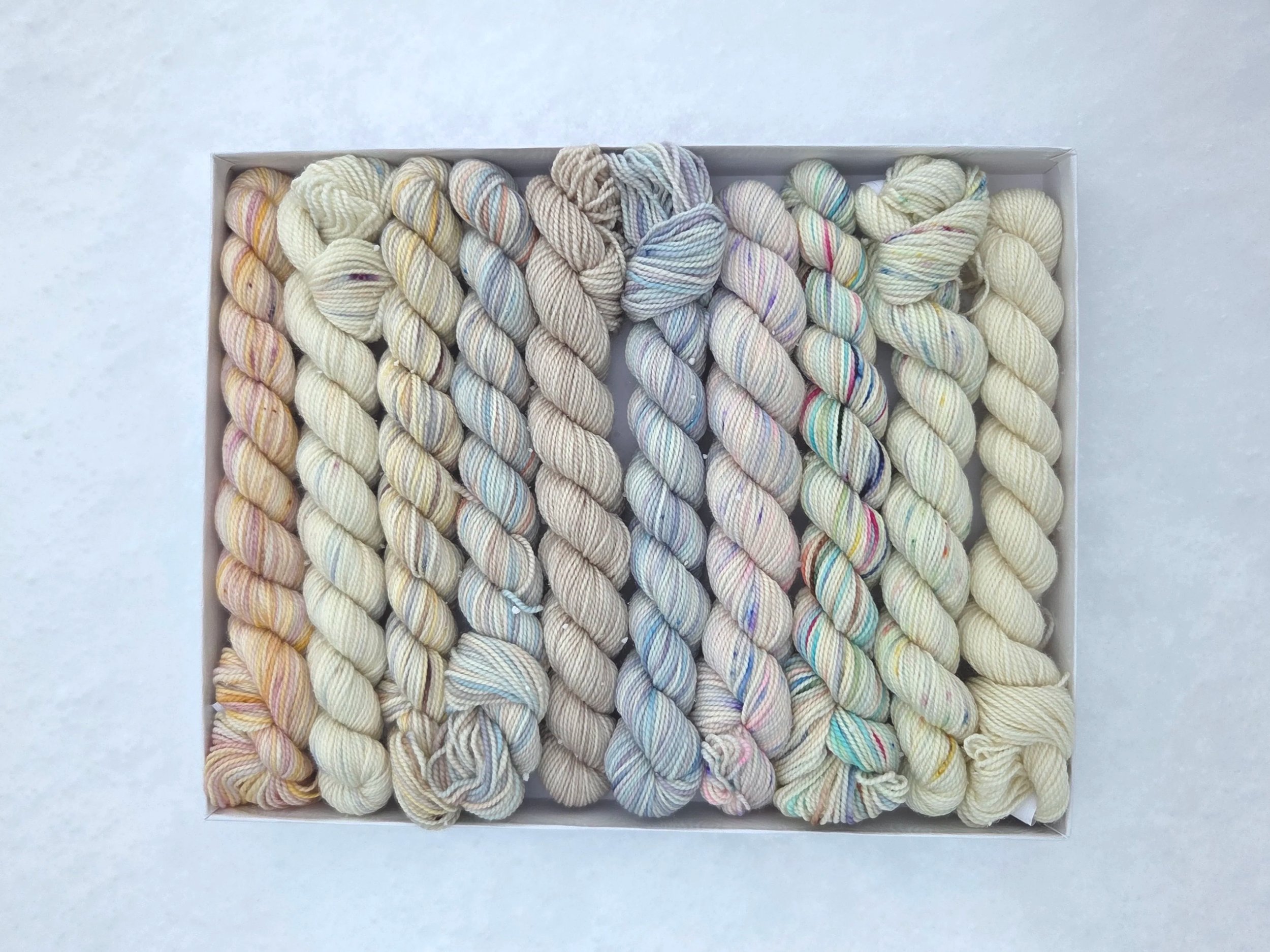 Specialty Boxes - Lace ~ Lace weight Yarn; Sparkle ~ yarn with sparkle ; Mori ~ 50% Mulberry silk 50% Merino